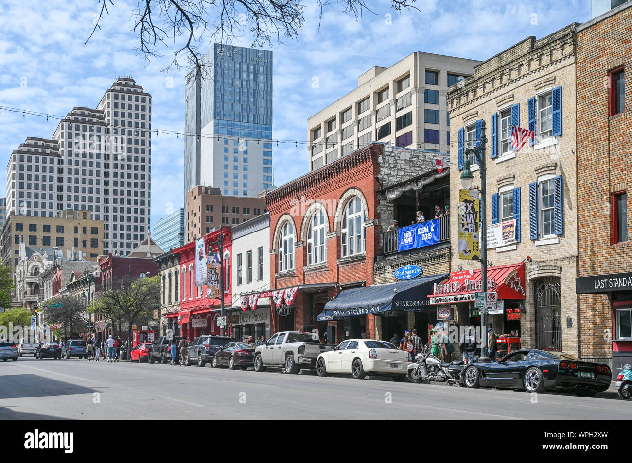 Sixth Street In Austin Texas During Sxsw Festival In March 2019 This Historic Street Is Famous For Its Live Music Bars Stock Photo Alamy