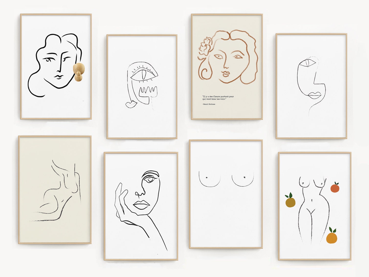 Wall Collage Line Drawing Mega Bundle Printable Matisse Etsy